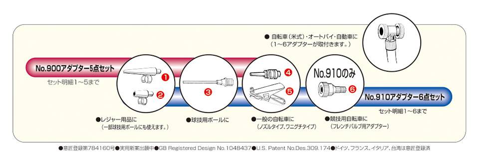 一般の自転車はもちろん、競技用自転車、自動車、オートバイ、球技用ボール、ゴムボートなどのレジャー用品まで幅広くお使いいただけます。